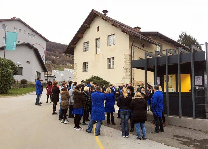 Delavci so ustavili delo in vztrajajo pred vhodom v Iskrin obrat v Semiču. Foto: BoBo Vodstvo podjetja je zaposlene prejšnji...