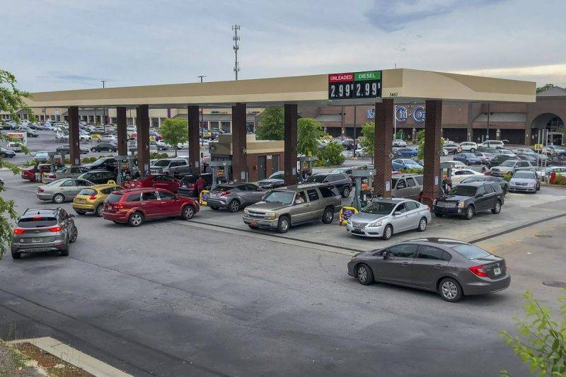 Kolona na bencinski črpalki v Georgii. Foto: EPA Več kot tisoč bencinskih črpalk na jugovzhodu ZDA je v torek ostalo...
