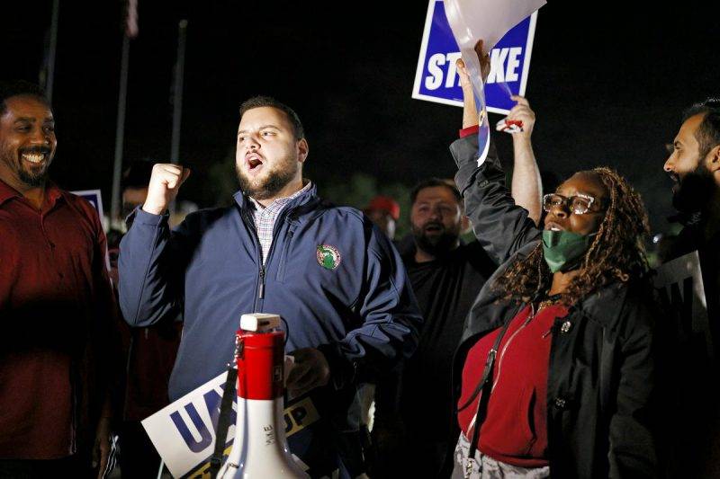 Stavkajoči delavci. Foto: EPA Sindikat Združeni delavci avtomobilske industrije (UAW) je prvič v zgodovini izpeljal stavko v podjetjih treh največjih...