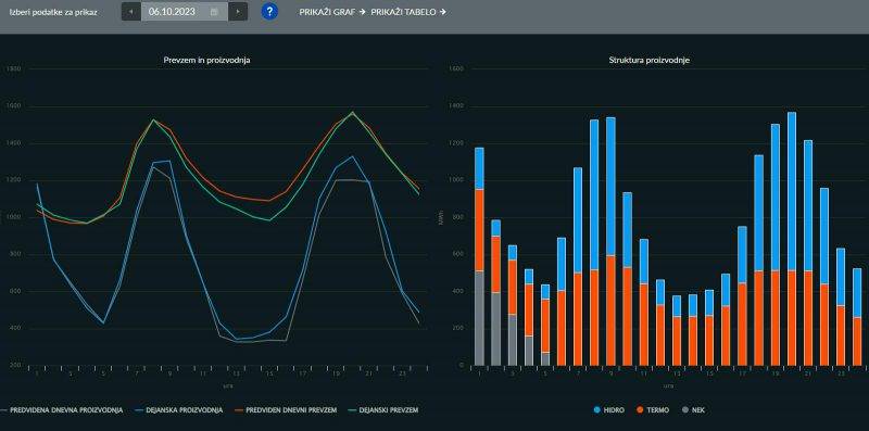 Na desnem grafu je razviden izklop NEK-a iz omrežja 6. oktobra zjutraj. Foto: Eles, zajem zaslona. Po izklopu Nuklearne elektrarne...