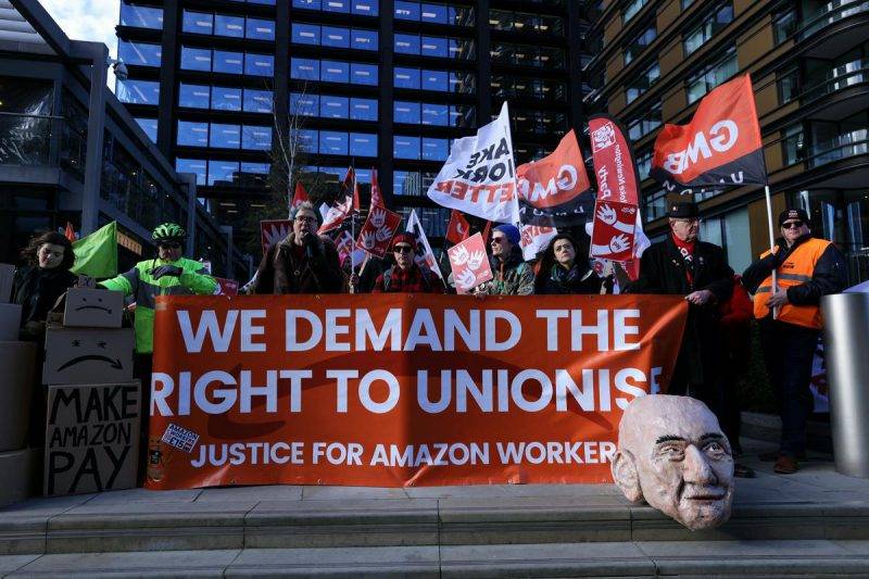 Protest pred sedežem Amazona v Londonu. Foto: Reuters Akcijo "Naj Amazon plača" je v več državah usklajeval sindikat UNI, ki...