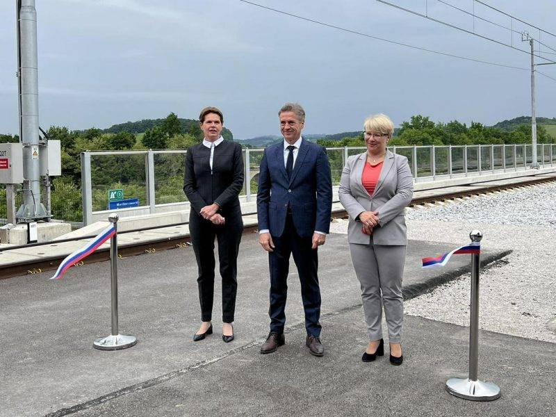 Ministrica za infrastrukturo Alenka Bratušek, premier Robert Golob in vodja predstavništva Evropske komisije Jerneja Jug Jerše. Foto: Ministrstvo za infrastrukturo...